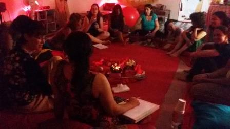ביום שלישי הגעתי סופסוף לאוהל האדום. היוזמה היתה של רמית שהגיעה למקום ולא הכירה איש, והאוהל עבר כמה גלגולים עד שהתמקם במקלט צפוני. במקום מתקיימים מפגשי נשים, מעגלי לידה, מעגלים לאירועי חיים שונים, וגם מפגשים בנושאים שונים שאליהם מוזמנות כל הנשים בישוב. "ועדיף – מכל הגילאים," אומרות הנשים הצעירות שהגיעו להיפגש איתי. "אין כמו להיפגש עם חכמות השבט, האימהות והסבתות שלנו." נכון, לפעמים הגברים מקטרים, בכל זאת, חלק מהמייסדים והמייסדות ינקו פמיניזם היישר מהשורש, אבל כמו שאביטל ציטטה את אמלין פנקהרסט: "אנחנו צריכות לשחרר חצי מהמין האנושי – את הנשים – כדי שהן יוכלו לשחרר את החצי השני." המפגש התנהל בצורה ספונטנית, דיברנו עליהן ואז קצת עלי, וסיכמנו שבפעם הבאה אעשה מפגש-חלף על סיפורי לידה ועל ביוגרפיה ועל שירה – בקיצור, שאבוא לשבוע…