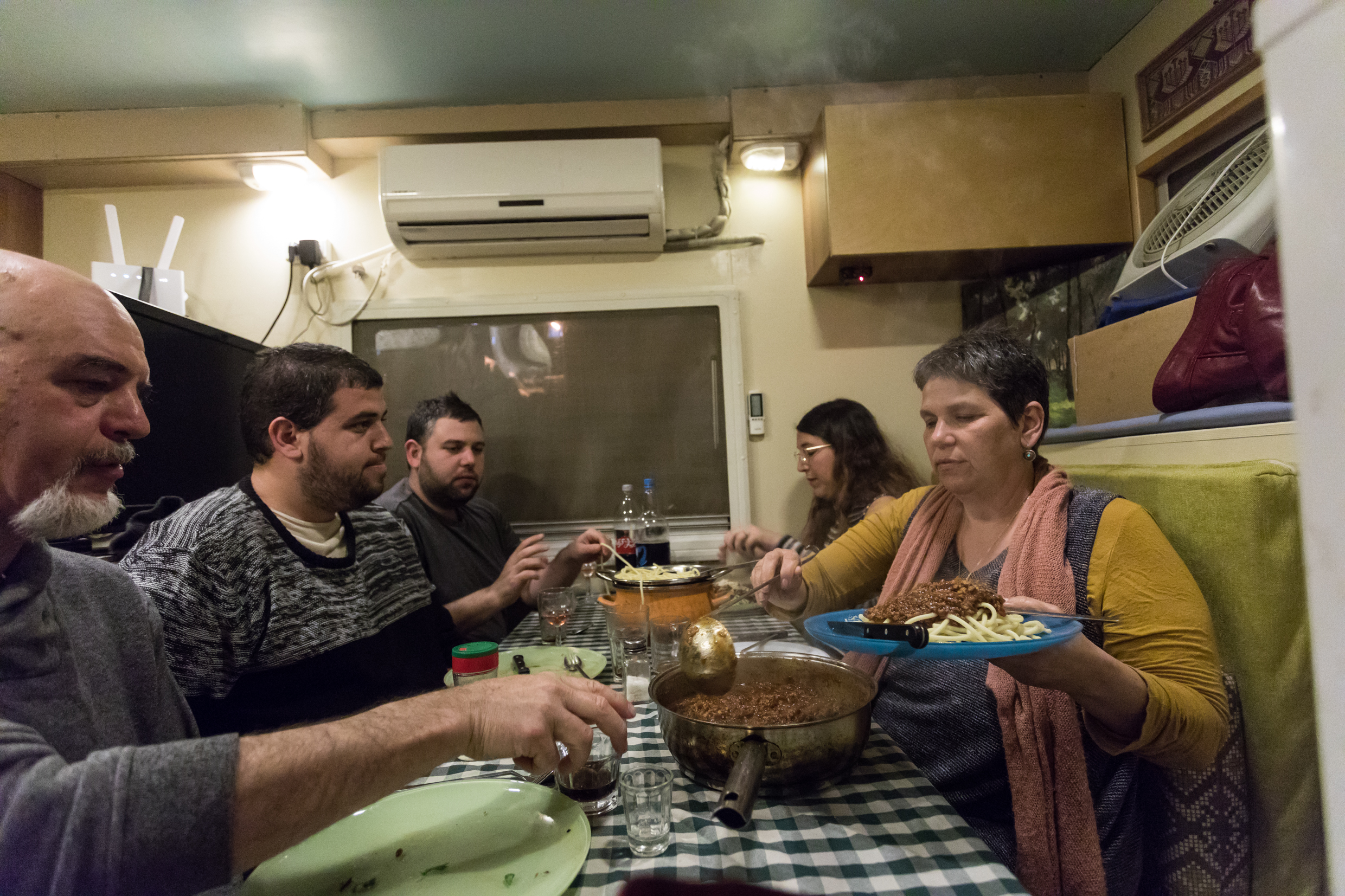הזמנו את הילדים לארוחת ערב במסעדה טבעונית בעיר, שלא נציין את שמה הפעם, כדי לא לפגוע בענף הטבעוני. השירות היתה מתסכל, מנה אחת נשכחה וכפיצוי הובא לנו קנקן תה עם ארבע כוסות. נראה שעד סוף הערב, המלצר שריחף כפרפר בחלל המסעדה ראה בשישייה שלנו רביעייה בעצם. פיצינו על החוויה בארוחת יום ששי במשאית, בליווי סרט – כמו בימים ההם.