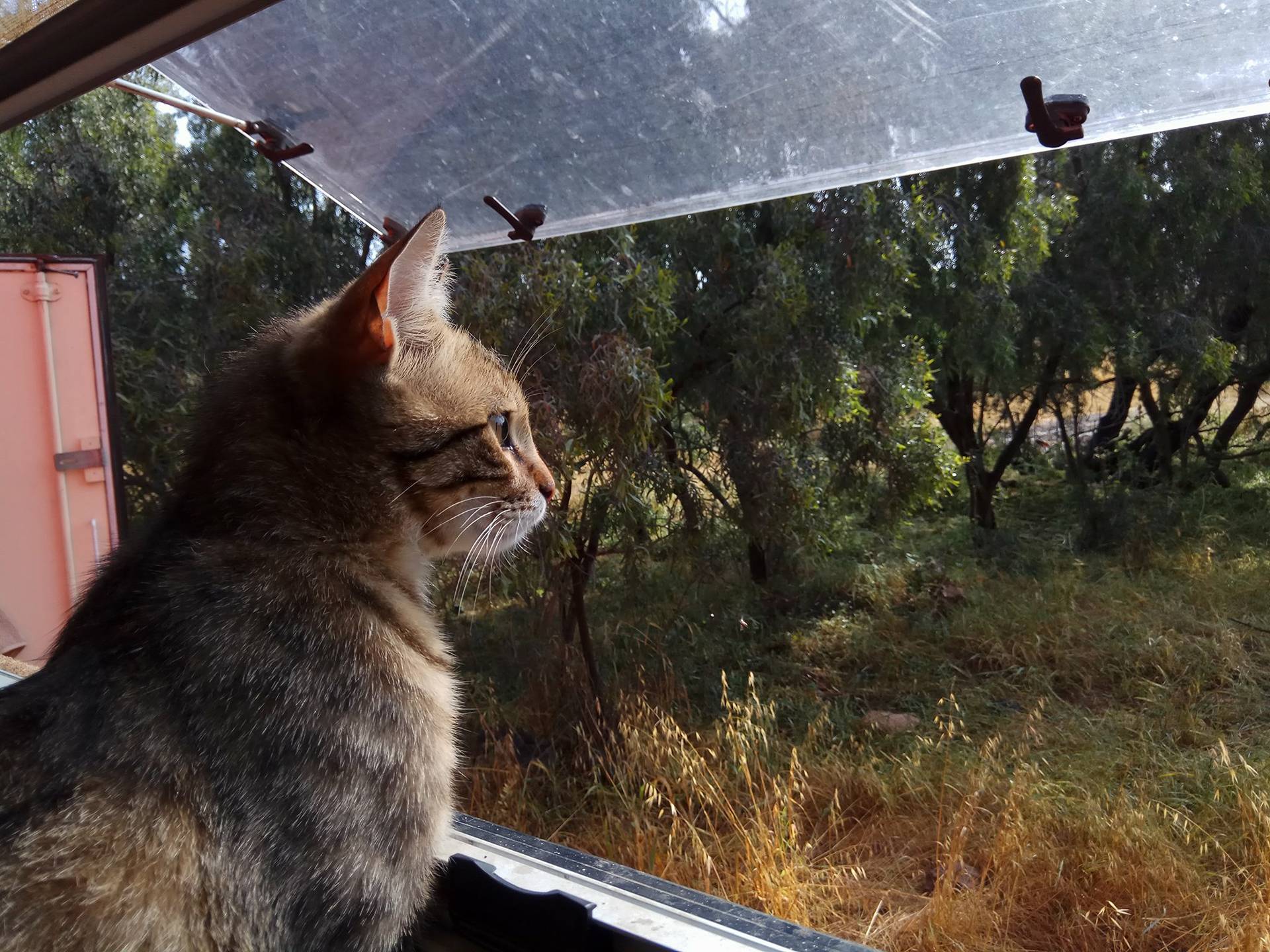 חנינו בבוסתן של יודפת, שלמרות הטיולים הרבים באזור, כולל עם הגן של הילד (כיום בן 26, תעשו חשבון לבד), מעולם לא נקלעתי אליו, והוא מסוג המקומות האלו שקורנים איכות מיוחדת של בריאות ושפע. כבר ביציאה הראשונה שלו מיץ תפס עכבר ענקי, ואחר כך צד גוזל פיצפון. רדפנו אחריו במטרה להציל את חיות הבר ממלתעותיו, אבל הוא נהם בכעס והתחמק, שללו בפיו.