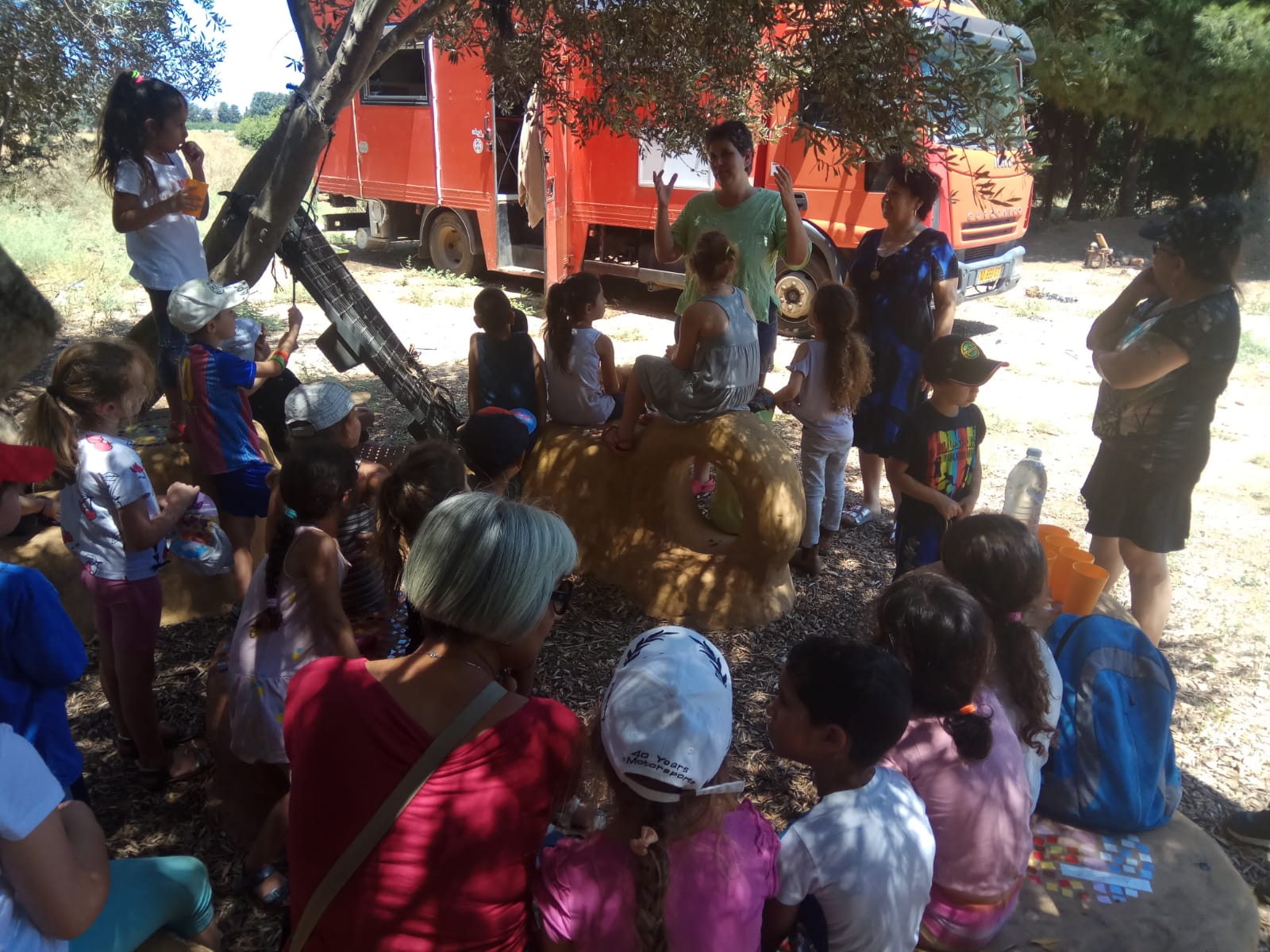 ביום שלישי, כנראה יום הטיול של הגן, הופיעו ילדי הגן המקומי, גן "פרפרים", מלווים בגננת (שחבשה מיקרופון מדונה של מדריכת טיולים). הסברנו לילדים על החיים במשאית, ענינו לשאלות אינטליגנטיות (יש לכם ילדים? יש מקלחת? מה אתם רואים בטלוויזיה?) ואחר כך הגננת העלתה את הילדים בקבוצות קטנות להצצה בבית. התמונות מהאירוע שוגרו בוואטסאפ לקבוצת הורי הגן, שזה כנראה לרוב הקיבוץ…